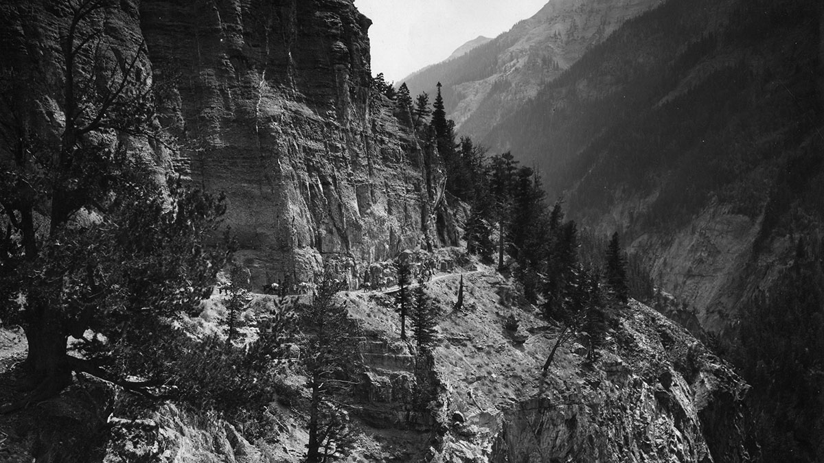 This trail branches off the main trail just above the Yellow Jacket Mine where the main trail switchbacks to the left. Continue straight, following the sign indicating Engineer Pass. The trail rises gently to timberline, where the jeep road at Engineer Pass may be seen in the far distance. The trail follows the creek up the open tundra to a location where rock cairns indicate the route up a small rise. From the top of the rise, the trail is easily visible and provides a steady gradual climb to Engineer Pass.