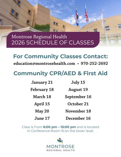Classes will be held at Montrose Regional Hospital. To enroll, please email education@montrosehealth.com or call
