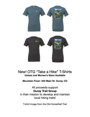 The Ouray Trail Group is a non-profit corporation of volunteers, founded in 1986, dedicated to the preservation and safe public use of Ouray area hiking trails. Our members take a stewardship role in protecting, preserving and maintaining the natural and recreational resources we all enjoy.